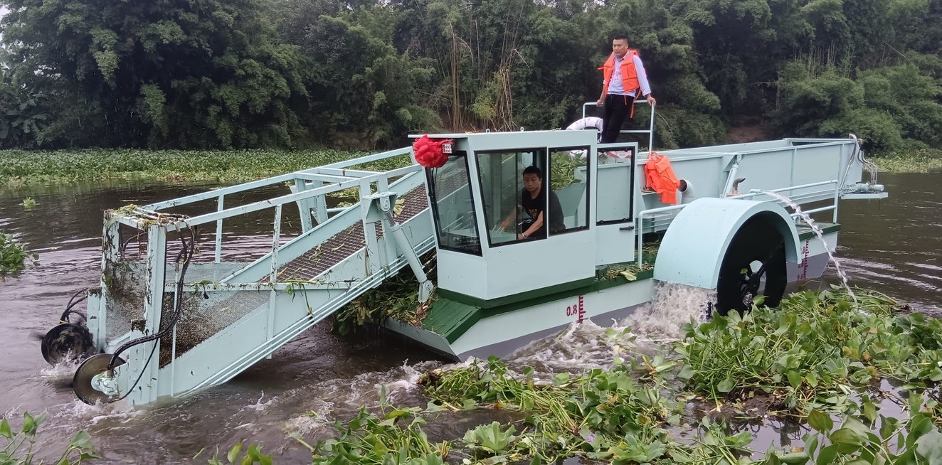 水草割收機亮相清水河